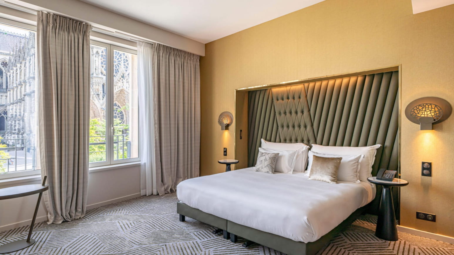 Poi vi addormenterete tra le braccia di Morfeo, in una camera confortevole e arredata con gusto. La moquette ricorda i vigneti visti dal cielo, mentre le luci in vetro sospese ricordano le bottiglie di champagne. I colori naturali sono un omaggio alla regione dello Champagne.