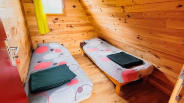 Se vi piacciono le vacanze insolite e autentiche, amerete questo grazioso chalet in legno! Dotato di 2 camere da letto con 2 letti singoli, questo alloggio offre uno spazio abitativo caldo e accogliente per 4 persone. Gli escursionisti, i ciclisti e i pellegrini troveranno sicuramente pane per i loro denti, con servizi come docce e toilette, senza dimenticare la terrazza coperta che si apre sulla campagna.