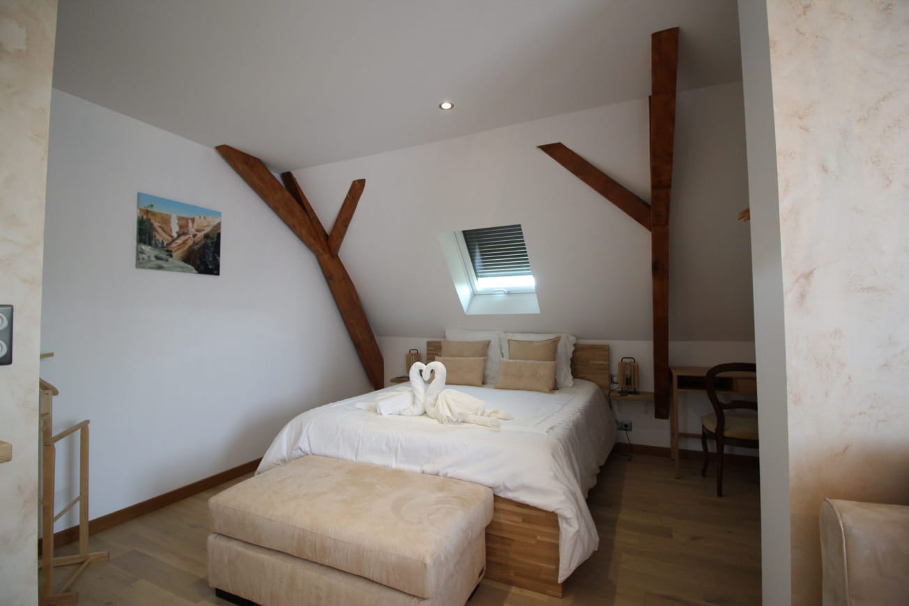 Le 2 camere matrimoniali, Tokay e Muscat, sono spaziose, luminose e ben arredate. Gli interni hanno un’atmosfera sobria, con arredi che mescolano modernità e autenticità. Le travi a vista aggiungono il tanto amato tocco alsaziano. Il soggiorno in questo ambiente finemente arredato, che offre il massimo del comfort e della privacy, sarà sicuramente piacevole.