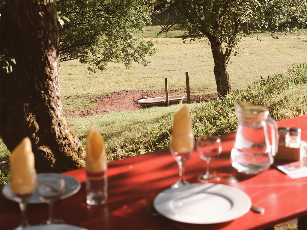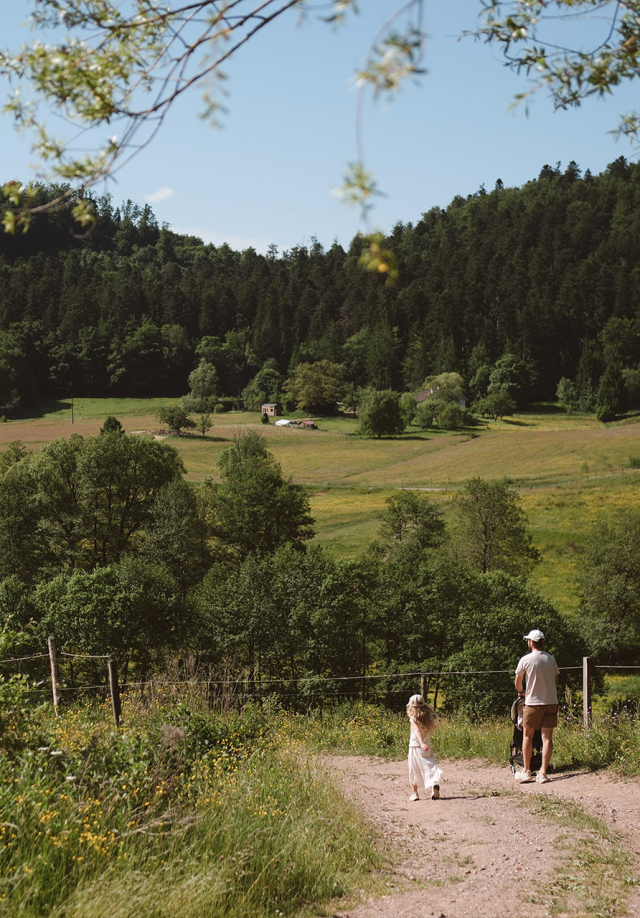 Après avoir câliné les ânes, nous sommes allés passer la nuit à la ferme “Les Prairies du Hang”, une adresse familiale et engagée où l’on élève des juments pour leur lait, utilisé pour l’alimentation et la fabrication de savons. Un lieu paisible, entouré de chevaux, de verdure et de jolis jeux en bois pour les enfants, tout ce qu'il faut pour séjour en famille. Nous avons même eu la chance de dîner à la table d'hôtes de la ferme, où un menu végétarien absolument délicieux a été préparé spécialement pour nous. Nous avons passé une soirée rythmée par les balades, les balançoires, les poules, le tout à la fraicheur des arbres et des prairies environnantes.