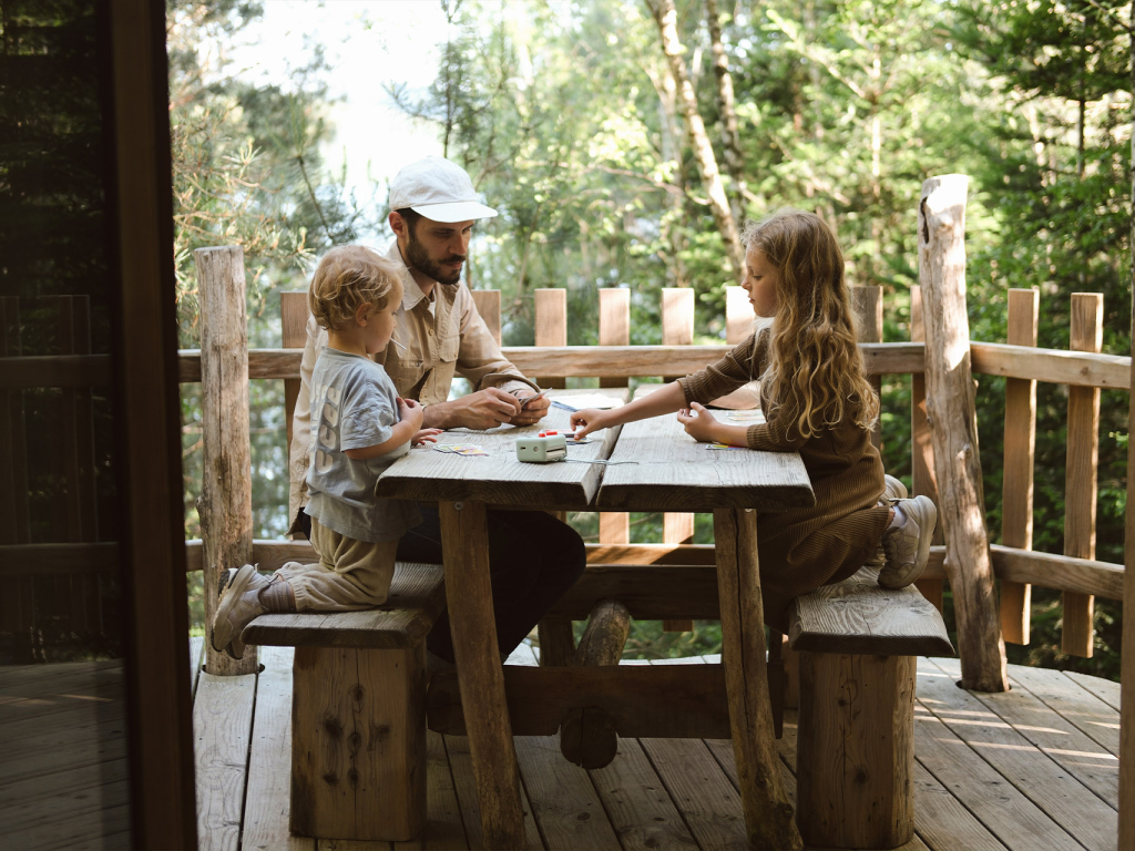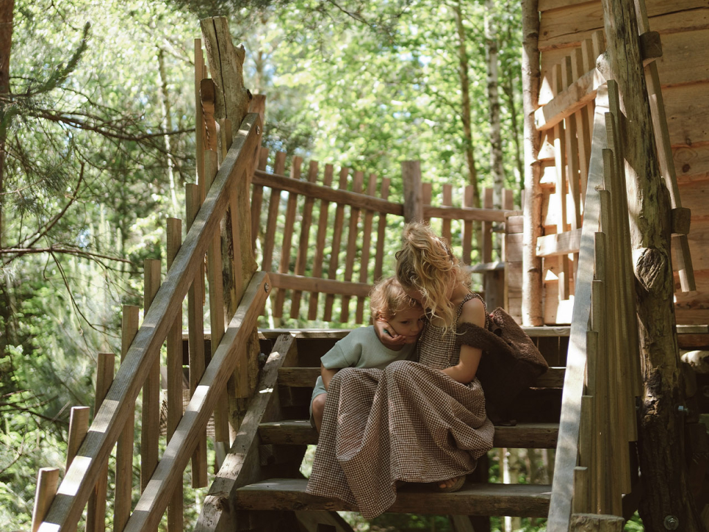 Pour la nuit, direction Les Cabanes du Lac de Pierre Percée, les seules en France à être entièrement autonomes en énergie. Les enfants étaient aux anges : une cabane dans les arbres, au bord d’un lac, avec pour seule compagnie le chant des oiseaux, le bruissement des feuilles et le temps qui ralenti. Le soir venu, nous avons allumé les bougies et nous nous sommes régalés avec une raclette végétarienne.