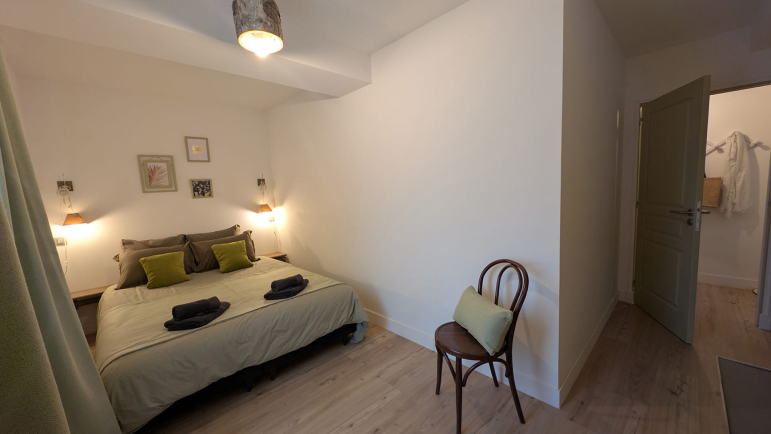 Naast de privéfaciliteiten heb je toegang tot praktische gemeenschappelijke ruimtes: een binnenplaats met parkeerplaats, een wasruimte en oplaadpunten voor elektrische voertuigen (service tegen betaling). Een onafhankelijke ingang en een digitale receptiehandleiding garanderen een soepel en stressvrij verblijf.