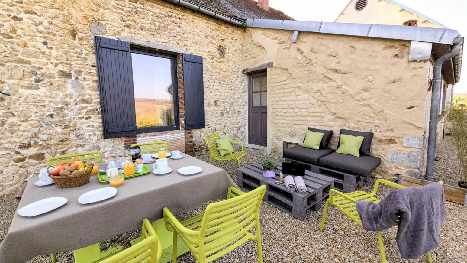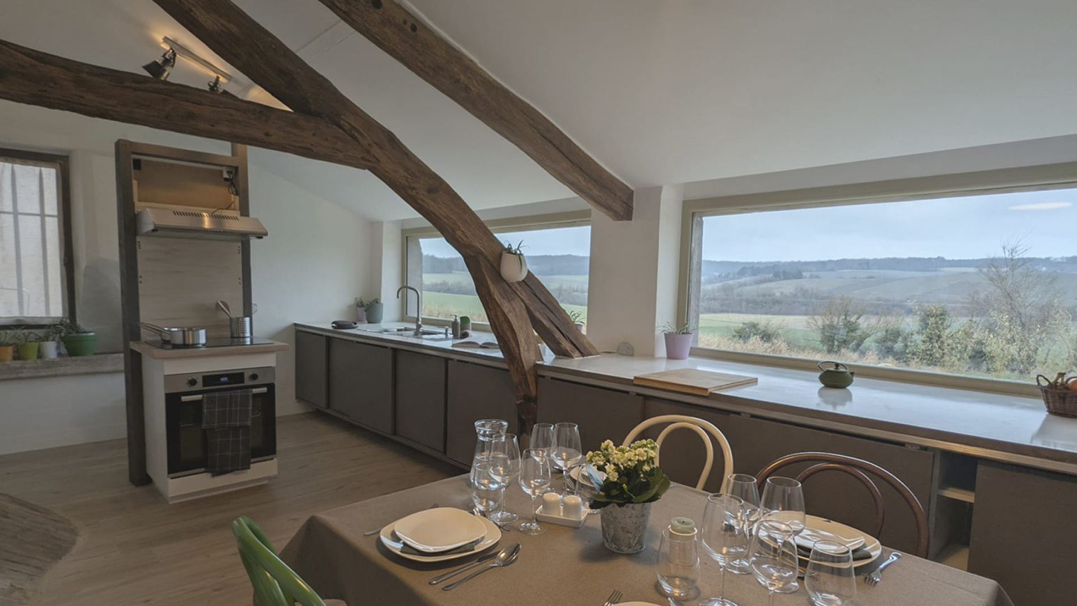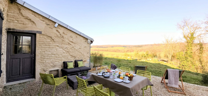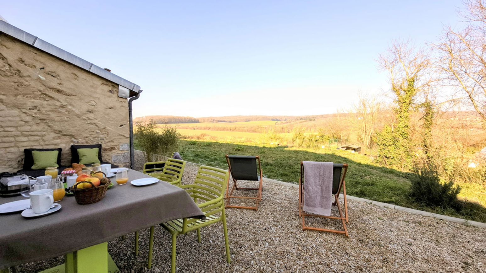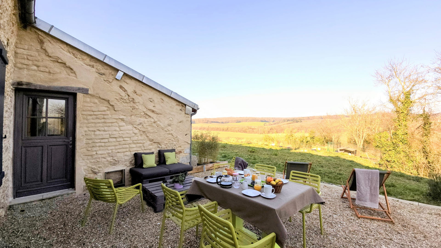 - Een privéterras met panoramisch uitzicht over het Champagne platteland