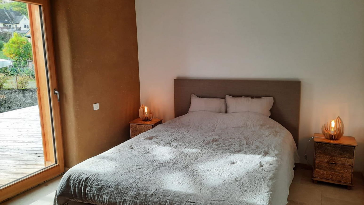 De gîte heeft 2 slaapkamers, ontworpen volgens bioklimatologische principes om een hoog niveau van thermisch comfort te garanderen. Een van de slaapkamers heeft directe toegang tot het terras, zodat je kunt genieten van een bucolisch landschap zodra de zon opkomt.