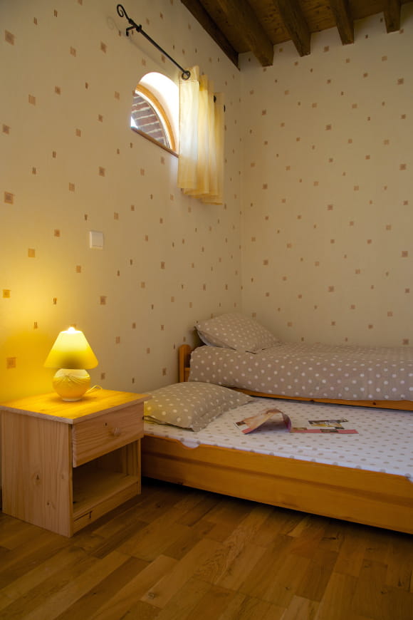 De gîte heeft een zit/eetkamer, ingerichte keuken, 1 slaapkamer (1 tweepersoonsbed), 1 slaapkamer (2 eenpersoonsbedden), doucheruimte, WC. Binnenplaats en omheind terrein gedeeld met de eigenaren. Verwarming en elektriciteit inbegrepen in de prijs. Lakens en huishoudlinnen inbegrepen.