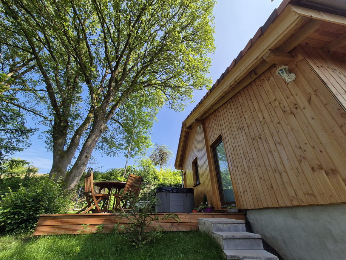 Geniet van de frisse Vogezenlucht vanaf het privéterras, uitgerust met teakhouten tuinmeubelen en een barbecue. Voor optimale ontspanning is er 24 uur per dag een 4-persoons jacuzzi beschikbaar, zowel in de zomer als in de winter. Het omheinde terrein, beplant met bomen, garandeert privacy en rust voor een rustgevend verblijf midden in de natuur.