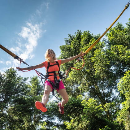 Daarboven geniet je van een uitzonderlijk panorama over de vallei van Keulen. Vereeuwig even de Vogezen, want het duurt niet lang voordat je weer beneden bent. Je keert dan zachtjes terug naar het platform, voordat je weer de lucht in wordt geslingerd. Je bent vrij om salto’s te proberen voor nog meer sensatie. De uitrusting van Bol d’Air voldoet aan de huidige normen om je veiligheid te garanderen.