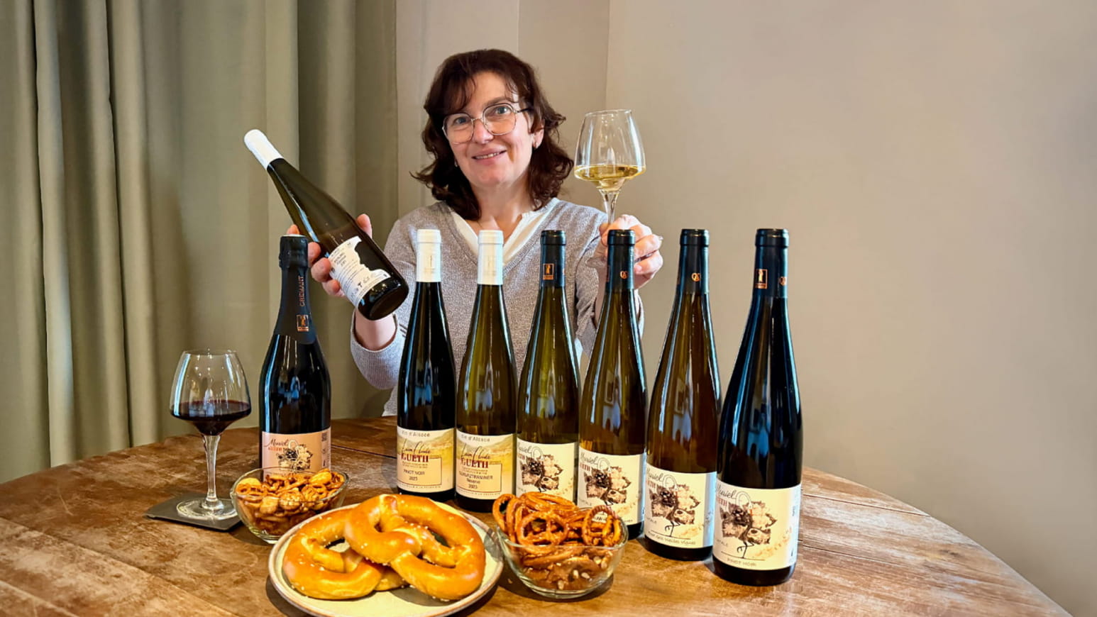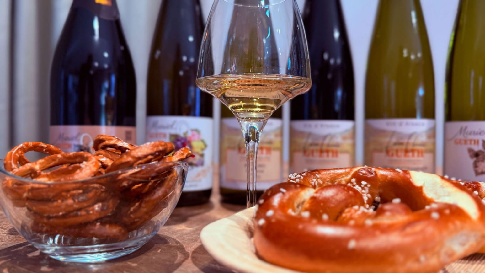 Na deze fascinerende onderdompeling krijg je de kans om deel te nemen aan een begeleide, persoonlijke proeverij van acht lokale wijnen, vergezeld van een pretzel (of een plakje Kougelhopf) en wat crackers.