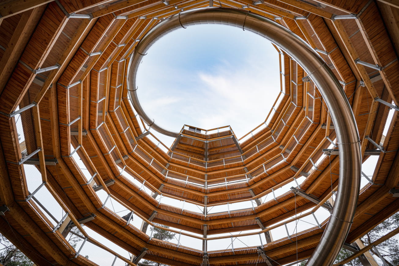 - De Chemin des Cimes Alsace is een plek midden in de natuur die uniek is in Frankrijk, met een 75 meter lange glijbaan.