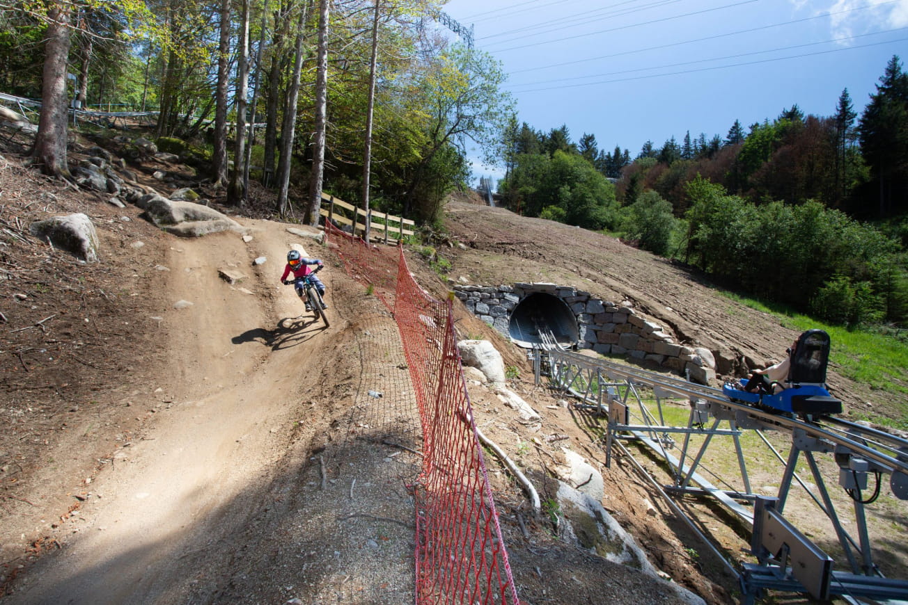 Op de Col du Calvaire, in Orbey, wacht je een rijk en intens parcours met een afwisseling van speelse en extreme routes. Er valt genoeg te beleven op de rails!
