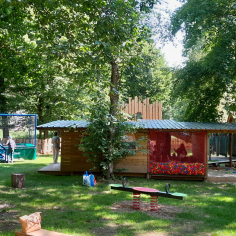 Les enfants disposent également d’un large choix de jeux de plein air adaptés à tous les âges : jeux à ressorts, tourniquet, balançoires, trampolines, tyroliennes, bac à sable et grande aire de jeux. Ces installations permettent de se dépenser tout en développant motricité, confiance en soi et esprit d’aventure.