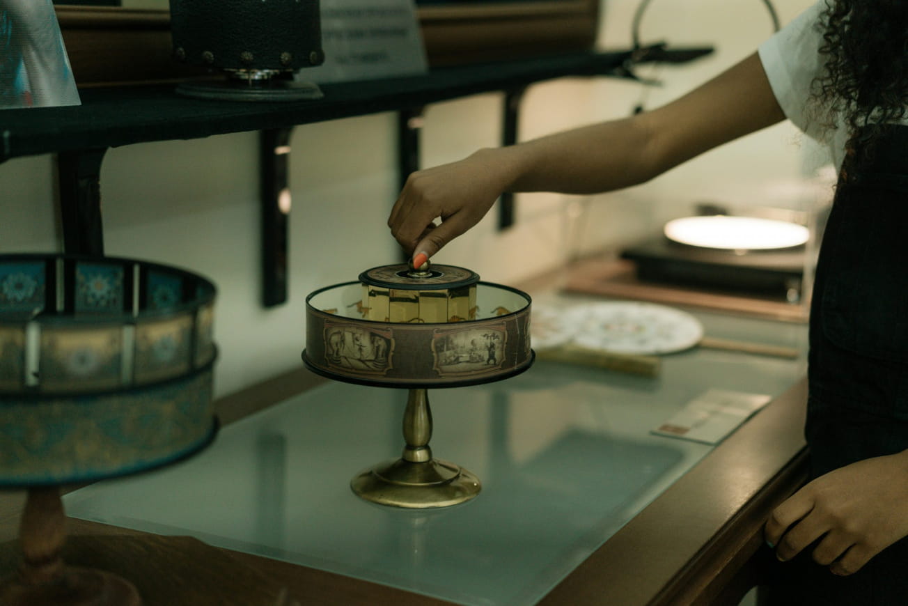 Manipulez d’anciens dispositifs tels que le zootrope, le praxinoscope ou les lanternes magiques, et laissez-vous surprendre par les illusions d’optique et les premières machines du pré-cinéma. De l’ingéniosité des inventeurs aux frères Lumière, cette visite retrace une aventure technique et artistique passionnante.