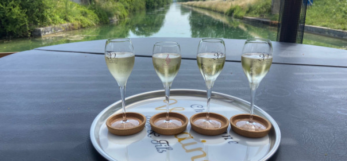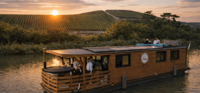 Location de bateau habitable éco-conçu, pour réaliser des circuits privés de visite oenotouristique, du patrimoine culturel et historique du vignoble champenois, dans le coeur historique du patrimoine mondial de l’unesco des coteaux, caves et maisons de champagne, entre Epernay, Aÿ-Champagne, Reims et Châlons en Champagne.
