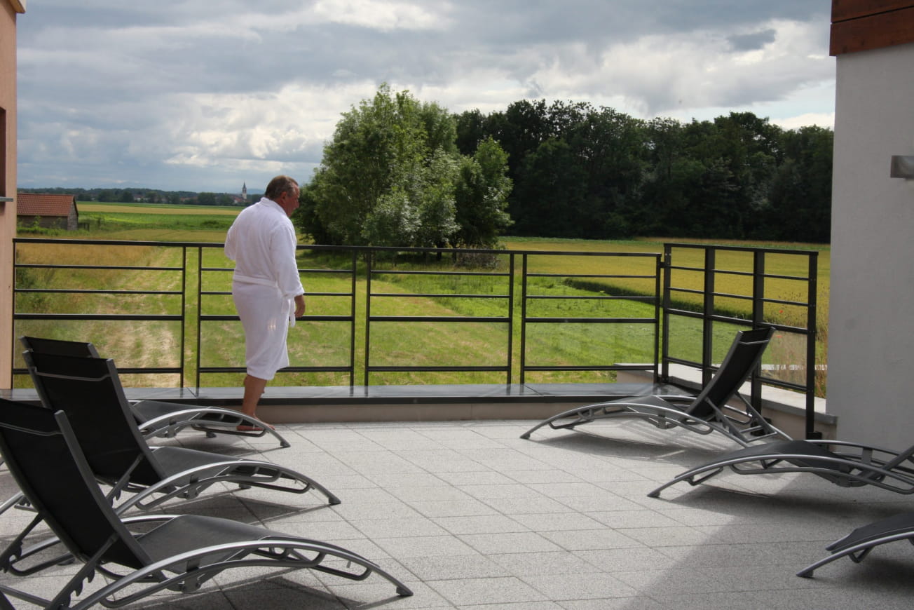 - Accès à un espace bien-être avec une terrasse panoramique donnant sur la forêt