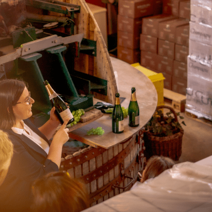 Nos prestations incluent des visites guidées de nos installations (mini-vignoble, pressoir traditionnel, cuverie, caves), des ateliers interactifs autour de l’élaboration du Champagne (méthode champenoise, dégustations commentées, initiation aux arômes).