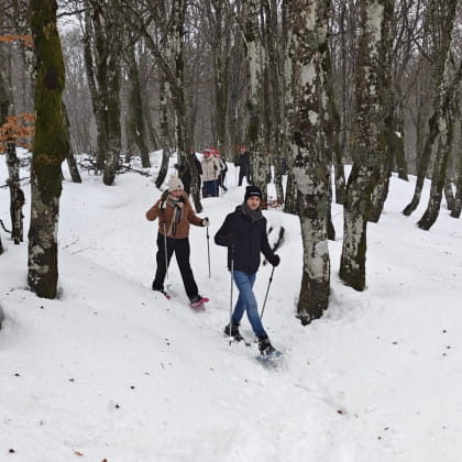 - Le matériel : raquettes à neige et bâtons