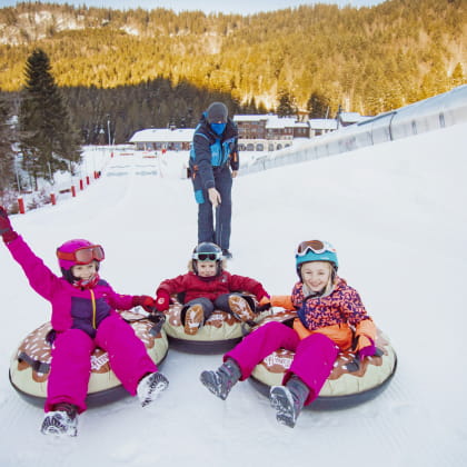 Figurant parmi les activités phares de la station de La Bresse-Hohneck, les bouées sur neige, est une activité de glisse à sensations fortes. Installez-vous dans un Donut géant et découvrez la sensation d’une belle glissade !