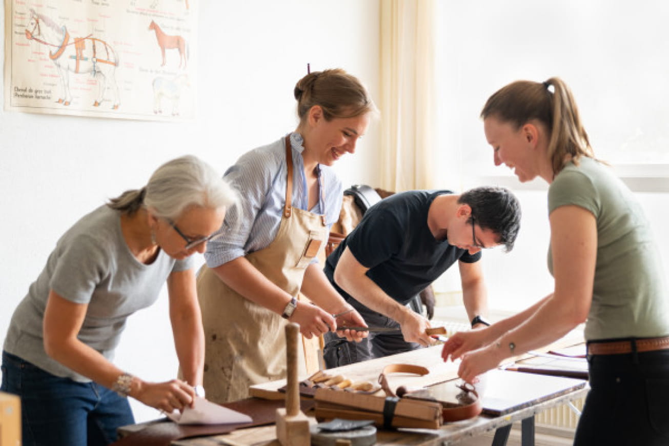 L’atelier commencera par une présentation pour faire connaissance avant de passer à la pratique. Une fois votre tablier terminé, vous pourrez présenter votre création aux autres participants lors d’une discussion détendue autour d’un café, d’un thé ou d’une limonade maison. Que vous soyez passionné du travail du cuir ou juste curieux d’en apprendre plus sur le métier, cet atelier est fait pour vous !