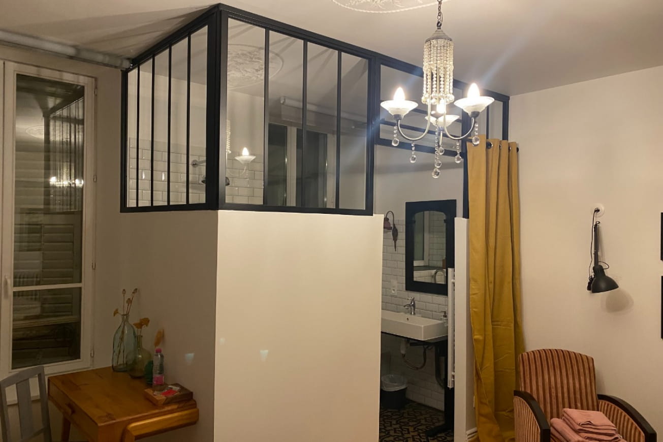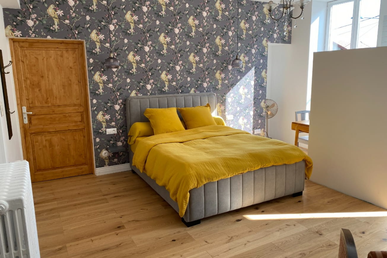 Vous séjournerez dans la chambre Belle Époque, située au rez de chaussée et accessible aux personnes à mobilité réduite. Sur demande lit supplémentaire 1 personne possible.