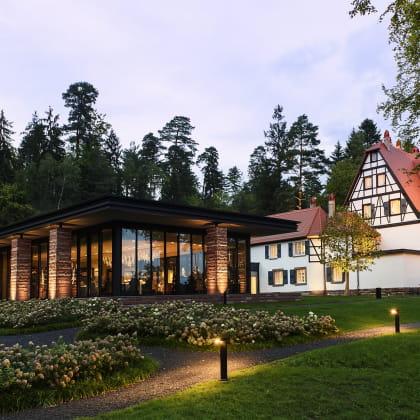 La villa que René Lalique a fait construire en 1920 connaît un nouveau destin depuis septembre 2015. À l’initiative de Silvio Denz, Président Directeur Général de Lalique, La Villa René Lalique est aujourd’hui le cadre somptueux d’un hôtel cinq étoiles et d’un restaurant gastronomique, récompensé de deux étoiles au guide MICHELIN en janvier 2016, trois mois seulement après son ouverture. Vitrine du savoir-faire et de l’expertise de la Maison Lalique, la Villa René Lalique offre six suites exclusives, dont la décoration a été confiée à Lady Tina Green et Pietro Mingarelli, architectes d’intérieur.
