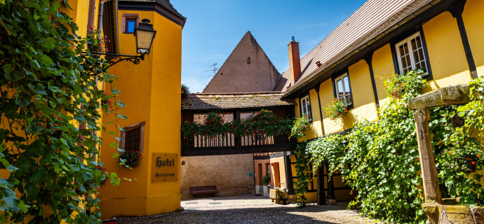 Offrez-vous une parenthèse de charme au cœur de l’Alsace, dans un lieu chargé d’histoire et de sérénité. Niché à Kientzheim, village emblématique de la Route des Vins d’Alsace, cet hôtel vous accueille dans un ancien couvent des Clarisses du 11ᵉ siècle. Dès votre arrivée, vous profitez d’un cadre authentique où pierres anciennes et atmosphère paisible invitent à la détente.
