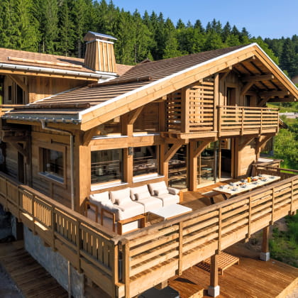 Avec ses 230 m², le Forest Lodge peut accueillir jusqu’à 15 personnes. Le salon lumineux, sublimé par une cheminée centrale, s’ouvre sur la forêt grâce à de larges baies vitrées. La cuisine moderne, équipée avec soin, séduira les amateurs de gastronomie. Le chalet offre 5 suites élégantes, dont une accessible aux personnes à mobilité réduite. Mention spéciale pour la suite parentale dotée d’une baignoire balnéo avec vue sur les cimes. Un espace ludique avec une chambre familiale modulable, mur d’escalade et jeux pour petits et grands complète cette offre unique.