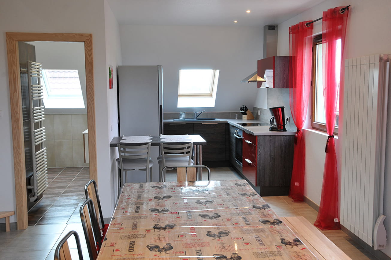 En bordure du joli village de Houssen, à 5 km de Colmar, le gite La Clef des Champs est une maison indépendante située sur une exploitation agricole. Parking privatif devant le gîte, une terrasse couverte spacieuse avec bains de soleil, barbecue, salon de jardin et table de ping pong vous accueille.