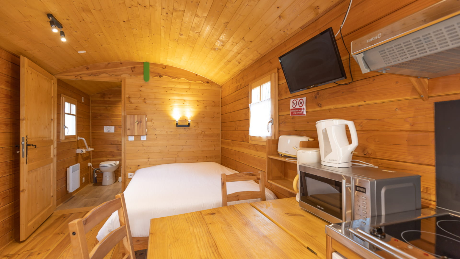 Évadez-vous dans une ambiance insolite et laissez-vous guider par le calme et l’invitation au voyage. Entièrement équipées (y compris salle d’eau et toilettes), les roulottes disposent de tout le confort dont vous avez besoin pour des séjours inoubliables.