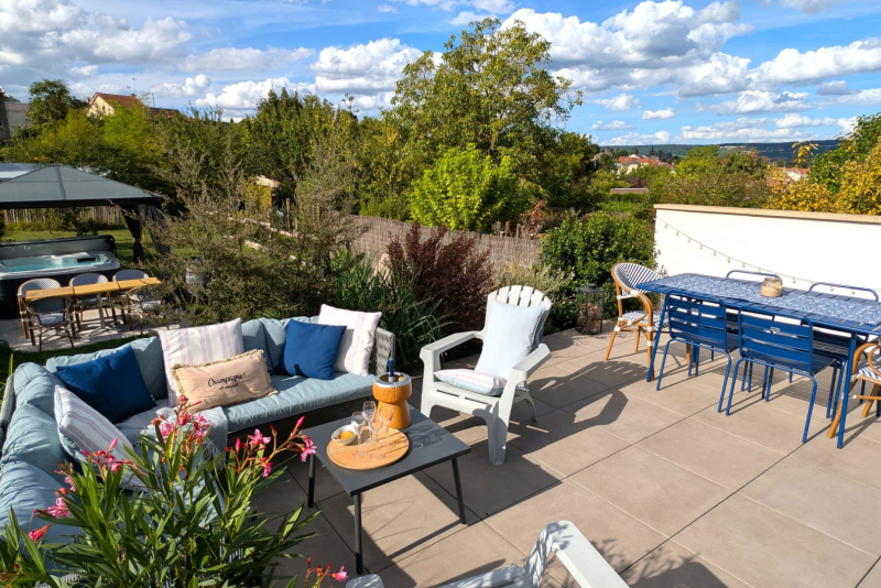 Une ambiance maison de campagne au cœur de la ville d’Epernay en Champagne, c’est ce que vous propose Le « Cémarose Gîte & Spa » à seulement 10 mn à pied du centre ville. Les atouts de notre gîte urbain, une décoration chaleureuse et ressourçante, 3 chambres grand confort et 2 salles d’eau, une literie hôtelière haut de gamme, une belle terrasse avec vue dégagée sur la ville et le vignoble, un spa protégé par une pergola. Une borne de recharge pour véhicule électrique privée. Location de vacances jusqu’ à 6 pers.