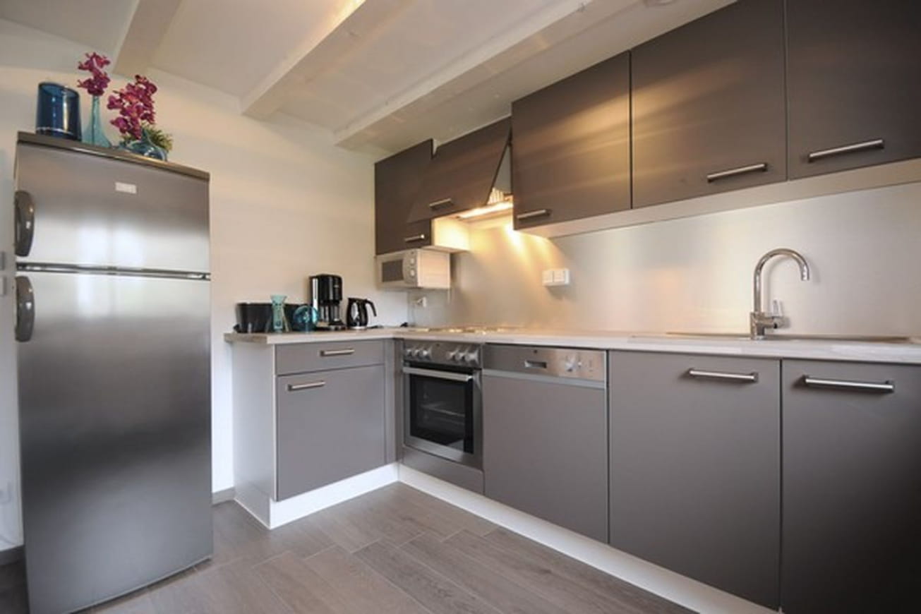Pouvant accueillir jusqu’à 4 personnes avec des enfants, ce gîte est une belle location pour les vacances familiales. Il dispose notamment de chambres à coucher, chacune équipée d’un lit double. Il est possible de demander un équipement bébé avec lit et chaise haute à la demande. La salle d’eau comprend une douche à l’italienne avec grande vasque. Le gîte est par ailleurs muni d’une cuisine entièrement équipée ouverte sur le séjour. Celui-ci propose un coin repas avec une table à manger moderne et des chaises nordiques, un salon avec canapé confortable et une jolie table basse.