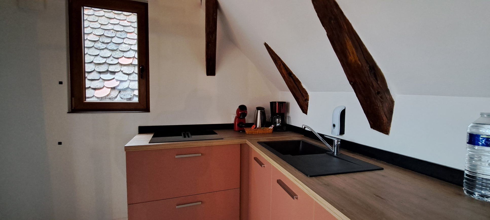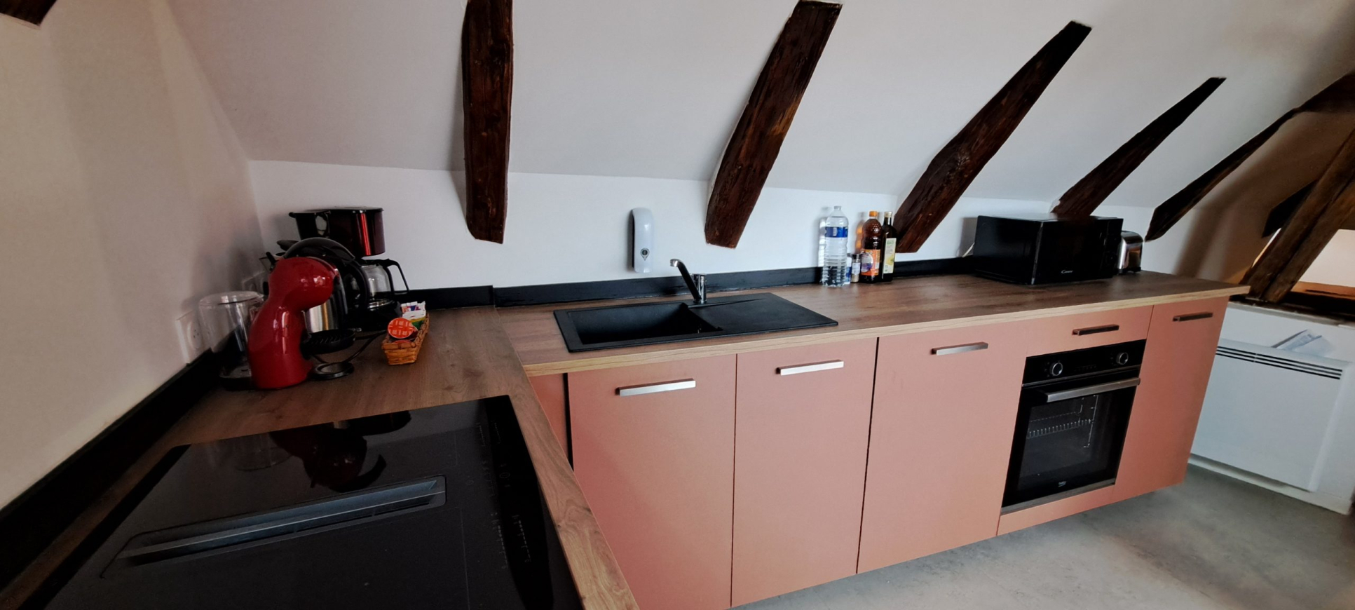Situé au 2ᵉ étage d’un petit immeuble typique, ce logement rénové de 48 m² séduit par son atmosphère chaleureuse et ses poutres apparentes, emblématiques de l’architecture alsacienne. Entièrement équipé, il offre tout le confort nécessaire pour un séjour serein, que ce soit pour quelques jours ou une semaine.