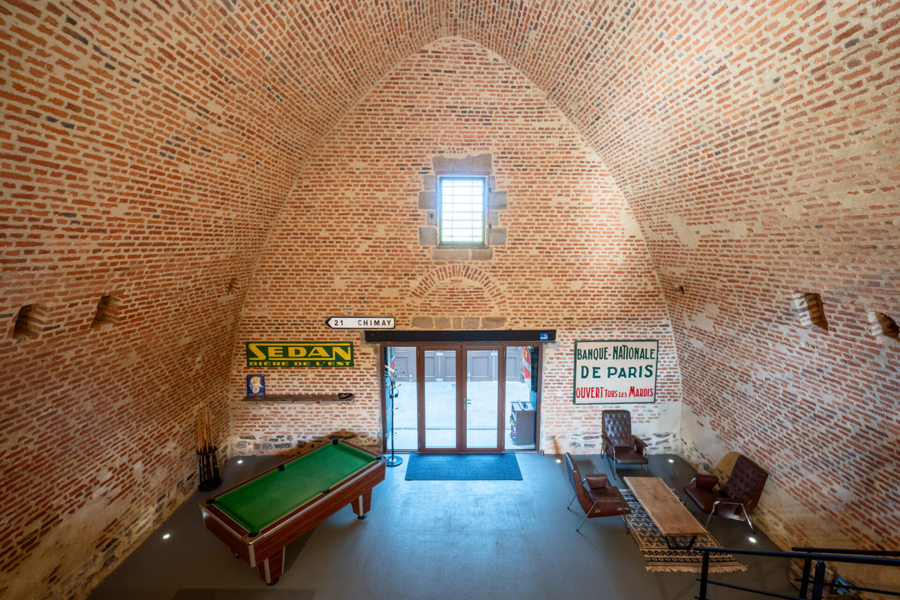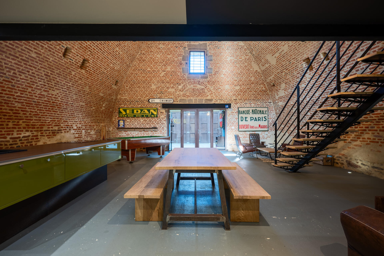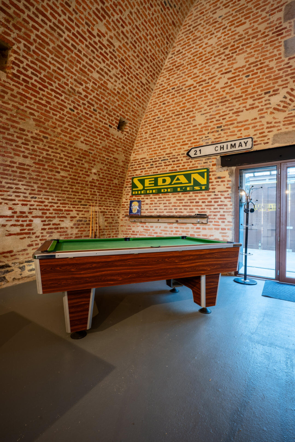 Implanté dans un cadre patrimonial unique, ce logement atypique offre un point de départ idéal pour explorer la vallée de la Meuse et la Belgique voisine. Les volumes généreux et l’atmosphère singulière du lieu invitent à la déconnexion. Après une journée de découvertes, vous profitez d’un espace convivial pensé pour le partage et la détente, avec notamment un billard à disposition pour prolonger la soirée dans une ambiance chaleureuse.